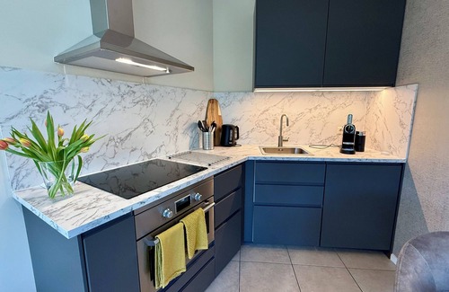 Prepara una comida casera en la cocina, equipada con horno, placa de cocina y frigorífico, además de cafetera y tetera, hervidor eléctrico y microondas. Otras comodidades incluyen ropa de cama, calefacción y una mesa de comedor.