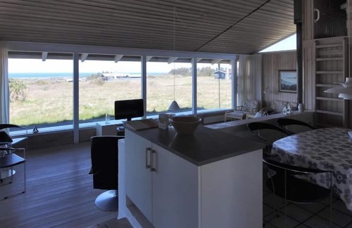 "Merete" - 900m from the sea in NW Jutland", 3-room house 84 m2. Object suitable for 6 adults. Living room with TV, CD-player, hi-fi system and DVD. 1 room with 1 double bed. 1 room with 2 x 2 bunk beds. 1 room with 1 double bed. Kitchen (4 hot plates, oven, dishwasher, microwave, freezer). Shower/WC, hydro massage bath. Terrace 12 m2, roofed. View of the sea. Facilities: children's high chair. Internet (WiFi). Maximum 2 pets/ dogs allowed.
