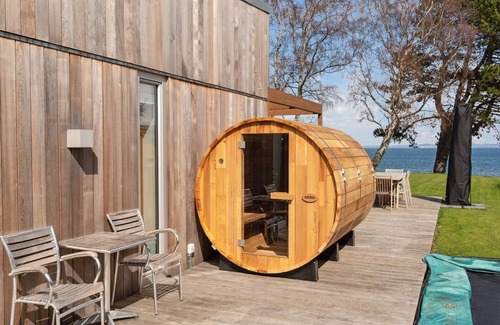 Casa unifamiliar del año 2019. A 10 m del mar. Privado: terreno 1'183 m2, jardín, cuidado. Ducha exterior, terraza (40 m2). En el inmueble: lavadora, secadora. Aparcamiento junto a la casa. Tienda de comestibles 2 km. Campo de golf 700 m. El propietario no acepta grupos de adolescentes/jóvenes.