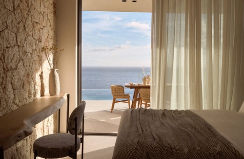 Perched high above the golden sands of St. Nicolas Bay, a fusion of designer-led interiors and Zakynthian seascapes combine at Verdante Villa I. Moulded from earthen materials and inspired by summer living, this luxury sea-view villa with a private infinity pool, has all the hallmarks of a unique hideout, but with a regional twist. Featuring three iconic sea-view bedrooms with en-suite bathrooms, the villa can comfortably welcome up to 7 guests to cherish a utopian holiday break with loved ones.
