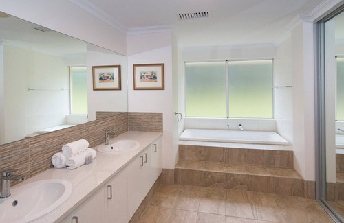 Esta casa está ubicada junto a la espectacular y tranquila playa de Geographe Bay. Salga y camine solo 40 metros por la pista de arena hasta la playa. Relájese en el spa de día ubicado al lado o disfrute de una buena comida y bebidas con familiares y amigos en el restaurante Wyndham Resorts.