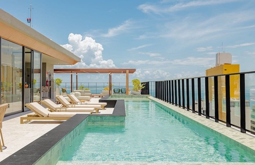 El condominio Alive cuenta con piscina, sala de estar y gimnasio con vista al mar. Su fantástico apartamento tiene un dormitorio con aire acondicionado, cama doble y TV.