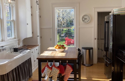 Esta casa de 2400 pies cuadrados fue construida en 1920 con un gran porche delantero y carpintería hermosa. El segundo piso imita al primero, con su propia cocina, comedor y sala de estar, así como dos dormitorios y un baño, por lo que es ideal para varias familias. Además, el ático se ha terminado en un área para niños con televisión, futones y juegos. Para facilitar aún más su estadía, tendrá acceso a las instalaciones de lavandería en el sótano.