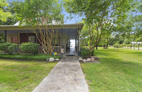 Nuestra casa clásica y cómoda en 1. 7 acres ubicada entre árboles maduros y hierba verde te dará esa sensación de estar lejos de la ciudad. Se asienta sobre el agua, en una cala privada. La sala de estar abierta y el agradable porche cubierto brindan espacio para la comodidad lejos de los elementos. Si buscas estirar las piernas, este es el lugar para ti. The Roadhouse cuenta con increíbles espacios al aire libre y espacio para recorrer. La cocina totalmente equipada y la cocina al aire libre son exactamente lo que necesita para cocinar sin problemas. Un baño completo se encuentra entre dos dormitorios, cada uno con camas queen en el primer piso. En la planta superior, el Master loft tiene una cama king size y una suite privada con vestidor y una bañera independiente. Hay un futón en la sala de estar para otra opción para dormir. Para más de 5-6 personas, el Guest house Hideaway está disponible y cuenta con una mini cocina con refrigerador, microondas y cocina de tamaño completo, 1 cama king, 1 cama queen y otro futón para opciones adicionales. The Hideaway también cuenta con un baño completo, esta área es ideal para retiros de adolescentes o familias extensas que prefieren un poco de privacidad. Ambas áreas duermen cómodamente 12-14. Tenemos un hermoso jardín que siempre está floreciendo con verduras de temporada. La pesca es divertida y fácil desde el muelle en la cala privada. Standup Paddleboard, canoa y kayaks disponibles sin costo adicional. También se proporciona una agradable área de fogatas para relajar, asar melones de pantano o incluso cocinar en el hoyo comercial con parrilla de leña rallada.