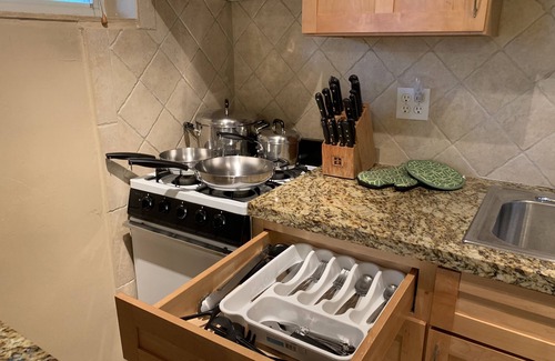 * Cocina totalmente equipada y equipada con elementos esenciales para cocinar..