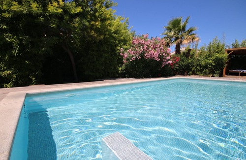 Ajardinado 620 m2, con hermosos olivos, palmeras, bambú, naranja, riego automático cada noche.