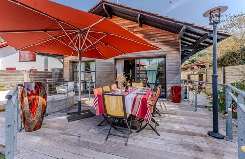 Villa Amaya es una casa de una sola planta, de estilo landés, decorada con buen gusto y maravillosamente bien situada a 5 minutos a pie de la playa y del centro de la ciudad de Moulleau.