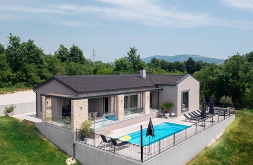 Casa unifamiliar "Villa Anthea Paola", moderna, confortable, rodeada de árboles y prados. En el aldea Frižolini, a 6 km del centro de Labin, a 11 km del centro de Rabac, a 6 km del mar, a 6 km de la playa, en el campo. Privado: terreno en estado natural 4'000 m2 con plantas y árboles, piscina rectangular, climatizada (31 m2, 140 cm de profundidad, Disponible por temporada: 26.Abr. - 30.Oct.) con escalera interior. Ducha exterior, terraza (50 m2), muebles de jardín, barbacoa, mantenimiento de la piscina a través del propietario/jardinero. En el inmueble: acceso a internet, lavadora. Aparcamiento (para 5 coches) junto a la casa en el mismo terreno. Tienda 500 m, supermercado 3 km, restaurante 500 m, parada autobús 2.5 km, playa de gravilla 6 km. Grupos de jóvenes sólo bajo petición. A tener en cuenta: aeropuerto 50 km de la casa. Piscina climatizada (extra). Hay que avisar con 7 de de antelación si quiere la piscina climatizada.