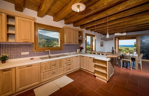 Los exclusivos interiores de 200 metros cuadrados están finamente amueblados y dispuestos en dos niveles cómodos. Esta exclusiva villa de lujo ha sido diseñada y construida para garantizar un alto confort de vida con el uso de materiales de la más alta calidad sin sacrificar las características típicas de las residencias sicilianas, como las preciosas vigas de madera de castaño que mejoran los techos.