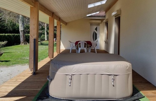 Beautiful semi-detached house of 120m² composed of an entrance, kitchen equipped with a fridge-freezer, dishwasher, mini oven, microwave, 4 gas burners, a living room with sofa bed and TV, two bedrooms each with a double bed. 160, a bathroom with wc, a laundry room with washing machine. Beautiful wooden terrace with terrace furniture and relaxation area with jaccuzi. Enclosed garden Wifi access Secure private car park Capacity: 4 people To be paid on arrival: tourist tax and accommodation deposit. Optional services to be provided before arrival: - end of stay cleaning at €80 - Late arrival beyond 6:30 p.m.: €50 supplement - Arrival on Sunday: €75 supplement - Pets allowed: €50 supplement/stay We do not offer rental of sheets or towels.