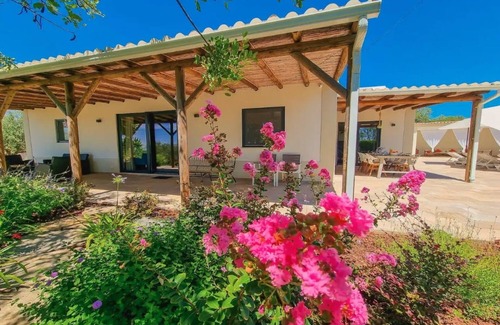 La villa cuenta con una zona exterior privada con piscina (climatizable bajo petición y con coste adicional), jacuzzi, jardín privado, terraza abierta, terraza cubierta y barbacoa. El espacio exterior está completamente amueblado y es ideal para relajaros o comer al aire libre.