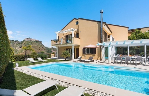 Las mejores tarifas para Taormina villa comienzan desde $936 por noche con incluye Lavandería, Aire acondicionado, Piscina, Piscina privada, Balcón/Terraza, Seguridad, Chimenea/Calefacción, Barbacoa/Cocina al aire libre, Internet, TV, Ropa de cama/Ropa de cama, Instalaciones de bienestar, Niño amigable, Cocina con todas las demás instalaciones. Hotala.es coincide con todos los viajeros con su hotel, resort o alquiler perfecto y si viaja con un grupo, amigos, familiares o mascotas.