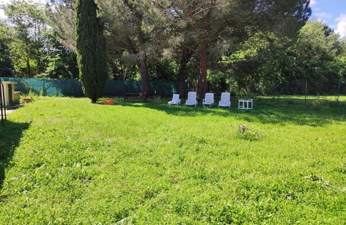 Palau-del-Vidre, un ambiente campestre a pocos minutos de las playas de Argelès-sur-Mer y Collioure para esta villa de una sola planta con un enorme jardín cerrado, equipada para 6 personas: