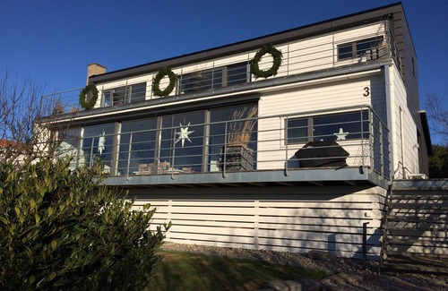 Bienvenido a nuestra bonita casa junto al mar, al norte de Varberg. Aquí vive una casa de 150 m2 en dos niveles con maravillosas vistas al mar desde casi todas las habitaciones, a solo 90 metros del agua. Tenemos dos balcones grandes, uno en cada piso, que es muy adecuado para colgar cómodamente en los muebles del salón y en las tumbonas, así como para las cenas al sol. La casa tiene un plan de piso abierto con un gran salón y cocina en uno. Hay 3 dormitorios, uno con cama doble de 180 cm y baño conectado, uno con cama familiar de 120 + 90 cm y otro con cama individual.
