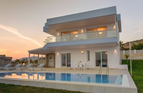 Villa de lujo con vistas al mar y a pocos pasos de la playa. Se encuentra en Kalamaki. Villa de lujo con vistas al mar y a pocos pasos de la playa. ofrece alojamiento, con TV, Chimenea/Calefacción, Niño amigable, Entre otras comodidades. Estas características Villa TV, Chimenea/Calefacción, Niño amigable, Para que su estadía sea cómoda.