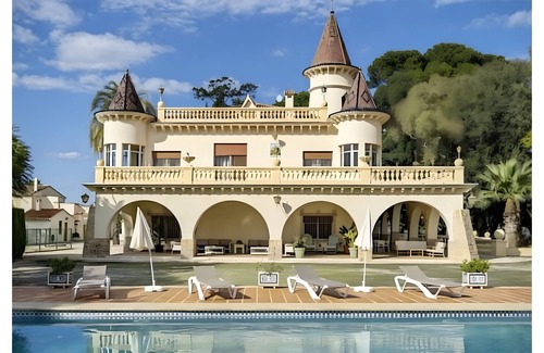 La villa El Palacete Dénia se encuentra en Dénia y cuenta con bonitas vistas a la montaña. La propiedad de 1500 m² consta de una sala de estar, una cocina, 8 dormitorios y 10 cuartos de baño, por lo que puede alojar a 21 personas. Los servicios adicionales incluyen Wi-Fi con un espacio de trabajo dedicado para la oficina en casa, una televisión, un ventilador, así como una lavadora. También hay una cuna disponible. Este alojamiento no ofrece: aire acondicionado. Este alquiler de vacaciones cuenta con un oasis privado al aire libre con una piscina, jardín, 2 terrazas descubiertas, un balcón y una barbacoa para una perfecta experiencia de vacaciones relajantes.