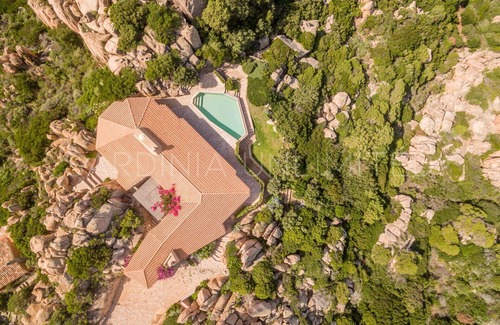 Fruto de la colaboración de algunos amigos arquitectos, esta hermosa villa está situada en una colina en una posición estratégica y reservada, con una vista exclusiva al mar Costa Paradiso.
