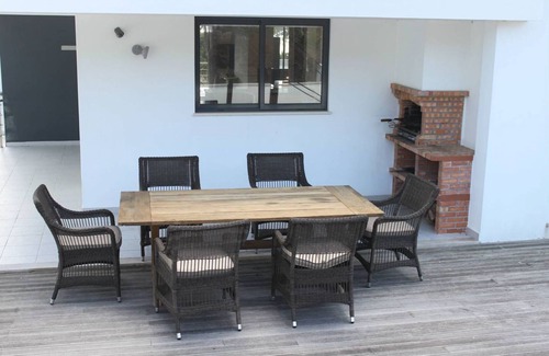 Chalet moderno y de lujo en la exclusiva zona de Foz do Arelho. Impresionantes vistas de gran parte de la pintoresca laguna de Obidos - de piscina, jardines, salón y dormitorios principales. La villa se encuentra en una posición maravillosa que atrapa el sol todo el día y está bien protegida de cualquier brisa fresca del océano. Hay cuatro dormitorios - dos son en suite con cabina separada en áreas de vestuario. Las habitaciones constan de tres camas superking, una cama doble y una litera para dos personas. Hay dos baños adicionales. Dos tire hacia afuera camas y un sofá cama en la sala de juegos también disponibles. Además de la barra de desayuno en la cocina, hay dos salas de estar y un comedor. Una sala de juegos que incluye mesa de billar, tenis de mesa y cine en casa también está disponible. Piscina climatizada privada, zona de jacuzzi, zona de barbacoa, amplios jardines en la parte delantera y trasera. Las bicicletas están disponibles en la villa - dos adultos y dos bicicletas infantiles son gratuitos para uso de los huéspedes, mientras que las bicicletas de primera calidad de los propietarios están disponibles para alquilar. Escuela de vela, golf de clase mundial, maravillosos restaurantes y lugares de interés histórico de la zona. Una base perfecta para la playa o el golf o unas vacaciones familiares de lujo.