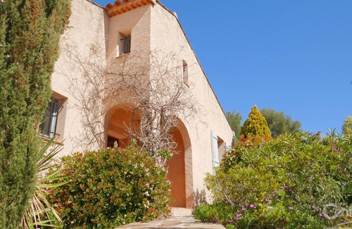 Con una ubicación ideal cerca de las playas de Badine y Almanarre, esta villa de 140 m2 construida en una parcela de 1000 m2 completamente arbolada, cerrada y sin vecinos con una piscina de 50 m2 (5x10) está compuesta por: