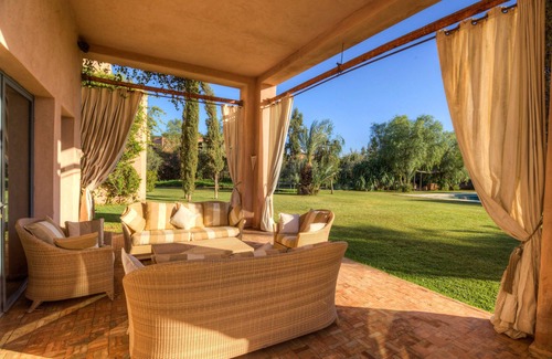 Situado en una zona ajardinada de unos hectáreas boscosas en gran medida, la villa ofrece una arquitectura tradicional y una decoración contemporánea. Incluye 7 dormitorios, 6 habitaciones dobles y 1 habitación para 4 niños o adolescentes. Todas las habitaciones tienen aire acondicionado. Ideal para 3 familias con muchos juegos (tenis de mesa, cama elástica, columpios, ...) o grupo de amigos. A sólo 20 minutos de la Medina. personal de la casa disponible.
