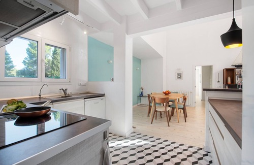 Villa Estranys, es una maravillosa villa para 8 personas situada en la lujosa y tranquila zona residencial de Bonaire, a penas a uno 500 metros de las playas de Sant Joan y Santa Pere o las playas de rocas de Bonaire o la cala de S'Illiot.