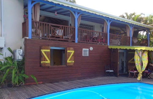 Ubicada en las alturas de Bouillante, a 5 minutos del centro de la ciudad y de la playa de Malendure, esta villa con aire acondicionado es una residencia turística de tres estrellas que ofrece una vista sublime de las islas de la paloma desde su cubierta de madera. la piscina. Muy bien ventilado, le permitirá disfrutar de su vista única de la Reserva de Cousteau cuando se despierta, o mientras prepara la comida y, por supuesto, disfruta de un tpunch en la terraza donde están las puestas de sol. ¡magia! Cerca de todos los servicios y playas mientras se está lejos del bullicio de Malendure, es un remanso de paz en medio de su jardín tropical.