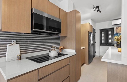 La cocina está equipada con frigorífico, además de cafetera y tetera, microondas y utensilios de cocina. Disfruta del wifi y de la televisión. Y como podrás aprovechar la lavadora y la secadora, no te hará falta llevar mucho equipaje. Otras comodidades de este alojamiento de 2 dormitorios y 1 baño incluyen ropa de cama, una tabla de planchar y aire acondicionado.