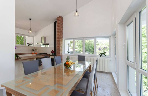 Villa Green Castle is located in a small village called Zadvarje, only 20 km from Omiš. A private swimming pool, sun loungers or beach chairs, and sun umbrellas, as well as a BBQ grill and outdoor dining area, are at your disposal, which makes this place a perfect spot for a nice and relaxing family or friends' vacation. You have access to a washing machine, iron, and ironing board. Free private parking is provided, reservation is not needed. Free Wi-fi is available throughout the property. Pets are not allowed. This five-bedroom villa with a swimming pool can accommodate up to ten people. It features Cable LCD TV as well as air-conditioning. The open space living room comes with a sofa and sitting area, and it's combined with the equipped kitchen and dining area. The kitchen is well equipped with an oven, refrigerator, microwave, kitchen utensils, and dishwasher. All the bedrooms are furnished with a large double bed. Free toiletries, hairdryer as well as linens, and towels are at your disposal. If you want to spend your vacation in a peaceful and quiet environment, far from the city crowds, Villa Green Castle is the best choice for you. The closest supermarket is only 500 m from the property, while restaurants and bars can be found within 1.5 km radius of the villa. The closest beach is 6 km away. Split airport is located 75 km from the property.
