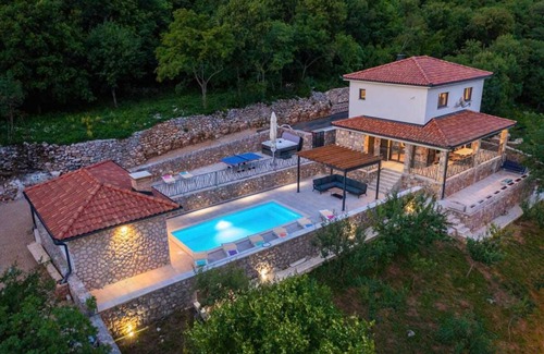 Discover the ultimate oasis of peace in the picturesque mountains near Novi Vinodolski - welcome to our enchanting villa. Just a short drive from the coast, complete seclusion and privacy await you here. In addition to an idyllic view of the surrounding countryside, the villa offers amenities such as table tennis, a whirlpool and a spacious private pool, which will provide you with unforgettable moments of relaxation. Escape the hustle and bustle and unwind in this newly constructed residence while enjoying the amenities of a modern home. In addition, the pool house with its traditional konoba invites you to spend sociable evenings in a cozy atmosphere. Welcome to your very own paradise far away from the crowds of tourists.