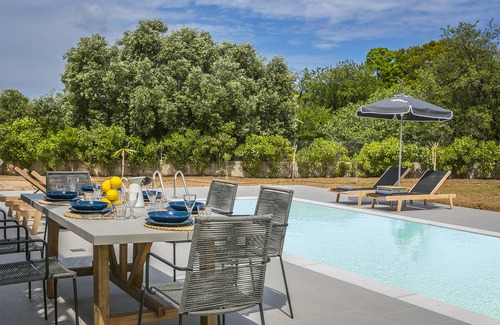 Tanto la villa como el área de la piscina están rodeados de hermosos jardines, exuberantes jardines y árboles que garantizan una estancia tranquila y agradable.