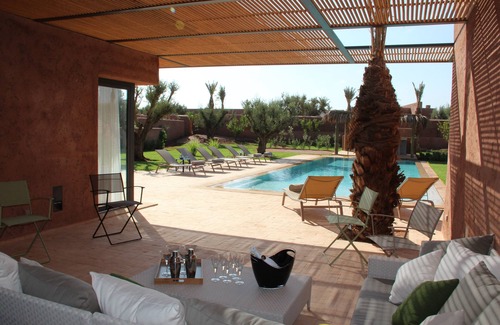 Lullaby "pequeño paraíso" En un estilo contemporáneo, Villa Lullaby combina materiales nobles y sobriedad. Situado en el Domaine Royal Palm Golf, esta hermosa casa ofrece muchos servicios de alta calidad: una piscina climatizada y se asegura mediante un obturador eléctrico, un hermoso jardín de 3164 m2, "el gazzebo" un comedor y un bar que la bienvenida a sus tardes dulces marroquíes.
