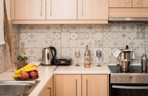 La propiedad ofrece una estancia relajante muy cerca tanto de la playa como del centro de la ciudad. Entre los lugares de interés cercanos se incluyen el antiguo puerto veneciano, un supermercado Synka, el mercado tradicional local, la plaza Agora en el centro de la ciudad y la playa organizada de Nea Chora. La propiedad está ubicada en cerca de la playa, y los enlaces de transporte público están a poca distancia.