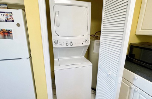 Condominio de un solo piso en el tercer piso: cocina abierta, comedor y sala de estar con TV. Queen size sofá cama en el salón. Dormitorio principal con cama King, TV y baño con bañera de hidromasaje y ducha separada. Segundo dormitorio principal con cama Queen, TV y baño con bañera de jardín y ducha separada. Lavadero con lavadora / secadora apilables.