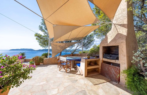 Esta espectacular villa cerca de Cala San Vicente es el lugar ideal para quienes buscan tranquilidad y vistas impresionantes al mar. Con capacidad para hasta 9 personas, se encuentra a solo 1 km de Cala San Vicente, donde hay restaurantes, supermercados y una hermosa playa. Además, los encantadores pueblos de San Carlos y Santa Eulalia están a solo 8 km y 15 km, ofreciendo más opciones de ocio y servicios.La villa cuenta con una amplia entrada que da acceso al comedor, un aseo y una cocina totalmente equipada con nevera, cocina de gas y horno eléctrico. Desde la cocina se accede al exterior, donde se encuentra la zona de barbacoa y la piscina infinity con vistas panorámicas al mar. El salón es acogedor y dispone de chimenea y TV satélite, creando un ambiente cálido y confortable.En total, la casa dispone de cuatro dormitorios con un diseño encantador. Un dormitorio doble tiene impresionantes vistas al mar y baño en suite con dos lavabos y bañera. Desde un patio lleno de plantas, se accede a otro dormitorio con dos camas individuales. En la primera planta, hay un dormitorio doble con baño en suite con ducha y acceso a una terraza privada. El cuarto dormitorio, también con cama doble y baño en suite con bañera, no está conectado con la casa principal y se accede a través de la zona de la piscina bajando unos escalones.El exterior es un auténtico paraíso, con una piscina infinity con vistas espectaculares, zona de barbacoa y diversos espacios para relajarse y disfrutar de la naturaleza. La villa dispone de aire acondicionado en el salón y dormitorios, WiFi y aparcamiento privado para cuatro coches.