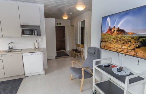 Villa Olotila - una experiencia vacacional compacta pero memorable en el corazón de Kisakallio Villa Olotila ofrece algo más que alojamiento: proporciona una escapada fácil y cómoda de la vida cotidiana, combinando a la perfección alojamiento, naturaleza y actividades en un paquete práctico y agradable. El KampusPass incluido garantiza que haya mucho que hacer, ¡durante todo el año! Este apartamento adosado de 60 m², situado en la zona de Kisakallio, a menos de una hora en coche de Helsinki, es perfecto para familias pequeñas, parejas o grupos de amigos que valoran la tranquilidad, la actividad y la calidad en un entorno compacto. La villa cuenta con dos dormitorios, cada uno con dos camas individuales. Tiene un salón-cocina abierto y funcional, un aseo separado y un cuarto de aseo con ducha y sauna eléctrica. Desde el vestidor se accede directamente a una terraza amueblada equipada con una parrilla de gas. El lago Lohjanjärvi está a unos 200 metros y ofrece una playa compartida para nadar con un fondo de arena que se profundiza gradualmente. En verano, un quiosco junto al lago sirve pizzas y es el lugar perfecto para disfrutar del ambiente del lago. También se pueden alquilar por separado una sauna junto al lago y una cabaña con parrilla. El Kampus Pass, incluido automáticamente en el precio del alojamiento, da acceso a las instalaciones del Instituto Deportivo Kisakallio. Se puede utilizar el gimnasio, con equipos de alta calidad y espacios para entrenamientos independientes. Se pueden reservar pistas de pádel y tenis (1 hora), que permiten jugar en el interior o al aire libre. Las bicicletas de montaña (1 hora, según disponibilidad) le permitirán explorar los senderos forestales y lacustres. Una sala de deportes cubierta (1 hora) es adecuada para practicar baloncesto, bádminton o ejercicio en general. El equipo deportivo se puede prestar en recepción. Confirme la disponibilidad de las actividades directamente con Kisakallio. Las reservas de actividades del Kampus pass están sujetas a disponibilidad. Póngase en contacto con nosotros por correo electrónico en kisakallio@kolmekampusta.fi o llame al 019 31511 (seleccione 4 en el menú). Al hacer la reserva, mencione su número de reserva de Lomarengas. La ropa de cama, las toallas y la limpieza final están incluidas en el precio del alquiler. Otras distancias: Helsinki 59 km, Lohja 12 km, Aeropuerto de Helsinki-Vantaa 64 km, Tytyri Mine Experience 8 km, St. Laurence Golf 17 km. Servicios adicionales: Todos los servicios de Kisakallio se encuentran a poca distancia a pie. Un restaurante cercano ofrece desayunos, almuerzos y cenas.