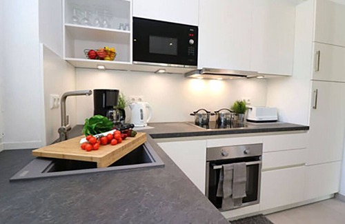 Casa adosada construida en 2020 Camas con somier de 180x200cm y 260x200cm Sofá cama con somier de láminas de 130x200cm Techo con cama doble de 160x200cm Sauna Calefacción por suelo radiante Filtro de polen y polvo fino (apto para alérgicos) Caja fuerte Equipamiento para niños pequeños 3 x TV con recepción vía satélite Mesa de ping-pong de uso compartido 2 plazas de aparcamiento Columna eléctrica para cargar bicicletas eléctricas