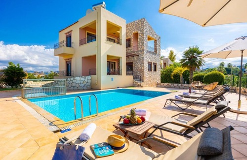 Villa Pasiphae 2 - Tres Habitaciones Villa, Capacidad 7 Se encuentra en Kato Stalos. Villa Pasiphae 2 - Tres Habitaciones Villa, Capacidad 7 ofrece alojamiento, con Estacionamiento, TV, Piscina privada, Entre otras comodidades. Estas características Villa Estacionamiento, TV, Piscina privada, Para que su estadía sea cómoda.
