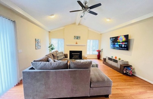 Este alojamiento de 3 dormitorios y 2.5 baños cuenta con una sala de estar, un comedor, chimenea y caja fuerte. El cuarto de baño incluye un secador de pelo, toallas y papel higiénico. Prepara una comida casera en la cocina, equipada con horno, placa de cocina y frigorífico, además de cafetera y tetera, hervidor eléctrico y máquina de hielo. Y gracias a la lavadora y la secadora, podrás viajar con poco equipaje.
