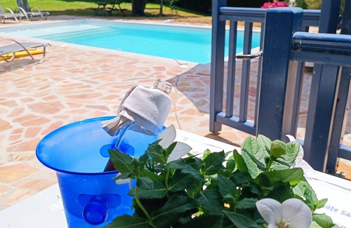 PISCINA EXTERIOR CLIMATIZADA de primavera a otoño, con dispositivo de seguridad extraíble, para que los niños pequeños no puedan acceder.