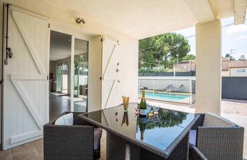 Casa de lujo muy luminosa con piscina (protegida para niños con un rincón infantil de 1.4 m por 3.5 m hasta 30 cm de profundidad) muy agradable y amigable para sus barbacoas.
