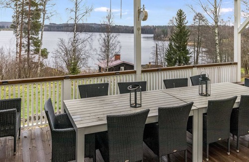 Permitido máximo 1 mascota / perro. Una elegante villa a orillas del lago Kulovesi. Los espacios también son adecuados para celebrar pequeñas celebraciones familiares y reuniones. La distancia a Tampere es de solo 40 km. El hermoso paisaje del lago cuenta con una sauna independiente junto al lago con una sala con chimenea, un baño con ducha y una gran terraza con una bañera de hidromasaje alquilable al aire libre. El edificio principal fue construido en 1938 y ha sido renovado varias veces a lo largo de los años. Las renovaciones más recientes incluyen una remodelación interior en 2012, reemplazo de ventanas, una terraza de sauna y una bañera de hidromasaje en 2023 y una renovación completa de la sauna en 2024. En la planta baja del edificio principal, hay una cocina independiente, un aseo y una sala de estar con acceso a un amplio comedor para 10 personas, que ofrece vistas directas al lago. La planta baja también incluye un dormitorio con dos camas individuales. La sala de estar tiene dos sofás cama, con capacidad para un total de cuatro personas. En la planta superior hay cuatro dormitorios: uno con cama de matrimonio de 140 cm, otro con cama de 120 cm, otro con dos camas individuales y otro con cama de matrimonio. También hay un aseo independiente con ducha y lavadora. La costa está a 60 metros y tiene un fondo de arcilla, con una profundidad de agua de aproximadamente 2 metros al final del muelle. Otras distancias: Ellivuori Resort a 4 km (esquí alpino, alquiler de equipos, parque de escalada, minigolf y restaurante). Nokia River Golf a 25 km, Lakeside Golf Vammala a 12 km. Nokia Eden Spa a 28 km. El uso del baño caliente al aire libre tiene un coste adicional. De septiembre a mayo, el coste es de 195 EUR por 1-3 días o 250 EUR por 4-7 días. En los meses de verano de junio a agosto, el coste es de 100 EUR por 1-3 días o 150 EUR por 4-7 días. Esta villa no se alquila a grupos de jóvenes.
