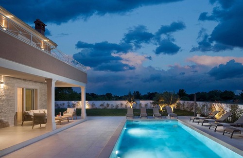 Villa Simona Residence se encuentra cerca de Rovinj y es una excelente opción para unas vacaciones relajantes. La moderna villa con piscina ofrece cuatro dormitorios para ocho personas.