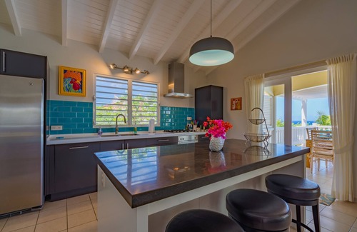 Villa Sirena tiene 3 dormitorios, todos con aire acondicionado y 2 baños. El dormitorio principal tiene baño en suite con tocador nuevo con lavamanos doble y ducha grande, ropa de cama nueva, toallas y cortinas opacas para que pueda dormir. Las puertas francesas se abren a la sala de estar al aire libre y la piscina, por lo que lo primero que verá en la mañana es el azul del Caribe. El segundo y tercer dormitorio, también con sábanas y toallas nuevas, comparten un baño. La sala de estar tiene puertas correderas que se abren completamente a la terraza para una verdadera vida interior / exterior. Y si necesita conectarse mientras está en Curazao, Villa Sirena tiene internet de alta velocidad y una estación de trabajo con computadora. ¡La cocina remodelada es UN SUEÑO DE CHEFS! Completo con un refrigerador de tamaño completo con máquina de hielo, lavaplatos, fregadero doble, estufa de gas y horno, Villa Sirena tiene todo lo que necesita y más para preparar comidas gourmet. ¡Todos los platos, vasos, cafeteras, tazas y más están a su alcance!