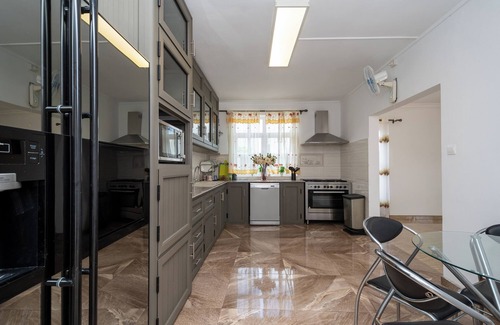 Este alojamiento de 5 dormitorios y 3 baños cuenta con una zona para barbacoas y aire acondicionado. Conéctate a Internet, o relájate frente a televisión. El cuarto de baño incluye un secador de pelo y toallas. Aprovecha para preparar una comida casera: dispones de horno, placa de cocina y frigorífico, además de cafetera y tetera, microondas y utensilios de cocina. Y como hay acceso a una lavandería, no necesitarás llevarte mucho equipaje. Otras comodidades incluyen ropa de cama, una tabla de planchar y servicio de limpieza limitado.