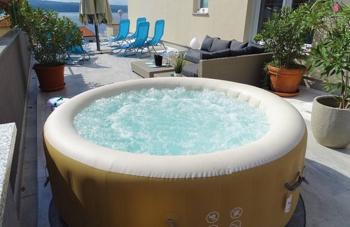 En el apartamento también puede relajarse en la hermosa piscina de nueva construcción o en la bañera de hidromasaje.