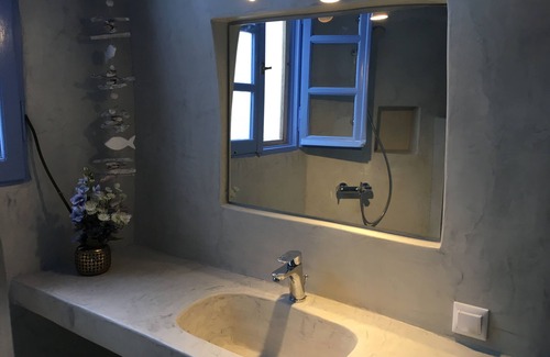 La CASA PRINCIPAL conserva el estilo arquitectónico único de Santorini y presenta características más modernas, como una claraboya abovedada en la sala de estar, una bañera hundida en el baño principal y la comodidad de una cocina moderna y totalmente equipada. Tiene 2 dormitorios privados y camas individuales integradas en las zonas de estar. Puede proporcionar alojamiento sofisticado y confortable para hasta 8 (ocho) personas.