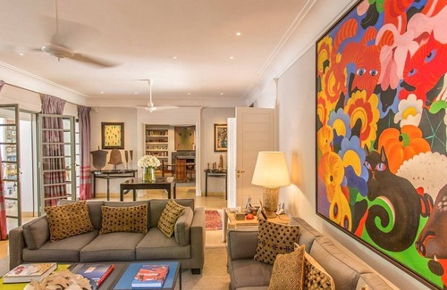 Tucked away in Marrakech’s serene Majorelle district, Villa Yacoub is a refined four-bedroom retreat combining elegance, comfort, and service. The interiors are artfully styled, with a grand lounge, colourful modern artworks, and light-filled bedrooms that all open onto views of the lush garden. An in-house cook, housekeeper, and caretaker ensure your stay runs smoothly from start to finish.