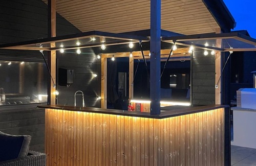 This beautiful holiday home in Ålbæk, just 500 meters from the beach, accommodates up to 20 guests and offers a variety of activities for all. The spacious open-plan living area features a kitchen, TV lounge, and dining space with a cozy wood-burning stove. The large dining table is perfect for meals, and the projector allows for movie screenings or presentations. The pool area, with a volleyball net and water slide, is a highlight, and guests also have free access to Frederikshavn Svømmehal. For indoor fun, there’s a large activity room with billiards, table tennis, and more. Relax in the outdoor whirlpool or sauna. The covered outdoor kitchen with three barbecues is ideal for meals, and there’s a trampoline for the kids. The house has eight bedrooms and a loft, along with high-speed internet and an EV charging point. Farm Fun, a nearby animal park, is just minutes away.