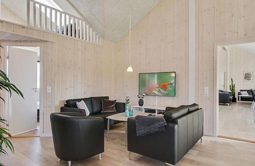 This luxurious summer house, located near the resort town of Olpenitz on the Baltic Sea in Northern Germany, is perfect for large family holidays or group getaways, accommodating up to 20 guests and three pets. The property features a spacious kitchen and living area equipped with two of everything - sinks, dishwashers, cookers/ovens, and ample fridge/freezer space. A long dining table and a cozy sofa area provide ample space for group gatherings.The house also boasts an activity room with billiards, table tennis, table football, darts, and a PlayStation 4, complete with a bar for serving cold drinks. Regardless of the season, guests can enjoy the indoor pool area, which includes a whirlpool, sauna, and a large swimming pool with Roman steps, a counter-current system, and a water slide.The eight double bedrooms are spread across three sections of the house, each with its own bathroom, while an additional loft space can accommodate six more guests, ideally children. The property has four bathrooms in total. Outside, a large, partially covered terrace with garden furniture and a barbecue awaits, along with a nearby playground.