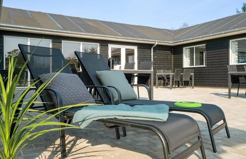 This spacious holiday home, located an hour from the Denmark border, comfortably accommodates 24 guests. It features an activity room equipped with table tennis, table football, darts, a PlayStation 4, and billiards. The room also includes a home bar. The house boasts a large pool room with a 20 m2 pool, a water slide, and Roman steps. For relaxation, guests can enjoy a whirlpool and sauna. The house is divided into three wings, each with its own bathroom, and a total of four bathrooms. It offers sleeping arrangements for 18 guests in double bedrooms and six in a loft. The heart of the house is a large living and dining area with an XL kitchen, featuring two of each appliance. A wood-burning stove adds warmth. The living area opens to a terrace with garden furniture and a barbecue. The house is situated in Olpenitz, a new holiday resort near a beautiful, child-friendly beach. The area, has a grocery store, bakery, and playground. The nearby town of Kappeln offers restaurants, shops, and charming streets.